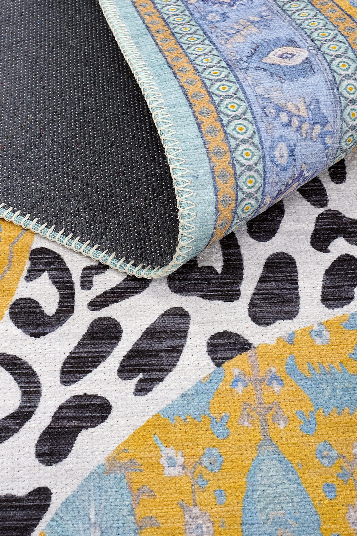 - Jagora JGR 400, geleneksel motifli zemin üzerine yerleştirilmiş çarpıcı leopar silüetiyle öne çıkan, sanatsal ve cesur bir halı tasarımıdır. Vintage sarı tonları, lavanta grisi ve açık mavi detaylarla harmanlanan bu halı, hem klasik hem modern tarzlara göz alıcı bir denge sunar. ;