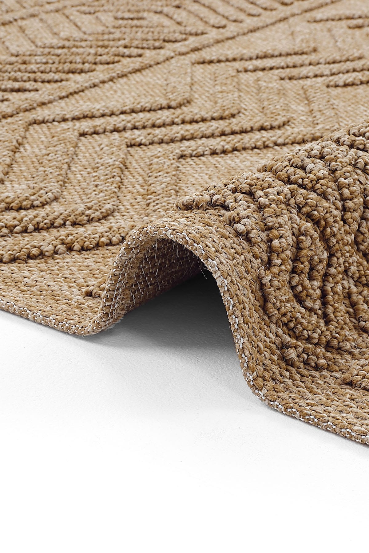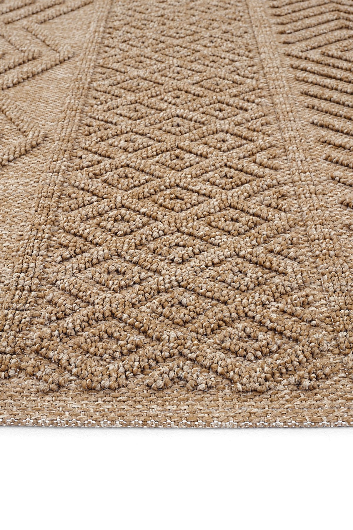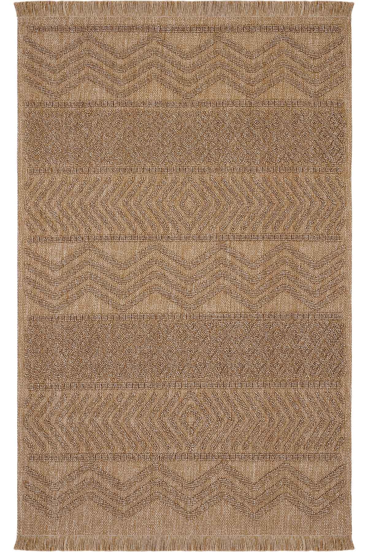 • Mirage Kahverengi Zigzag Kabartmalı Bukle Halı Geometrik Halı Kaymaz Taban Salon Oturma Odası Halısı ;