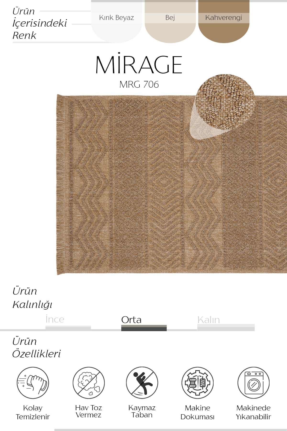 • Ürün Özellikleri: Makine Dokuması: Kaliteli ve uzun ömürlü kullanım sağlar. ;